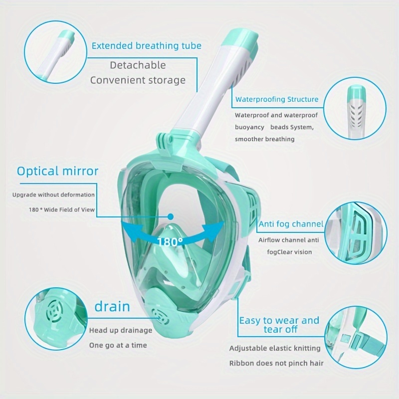 1 unisex diving goggles, silicone diving mask with snorkel, ideal for pool parties, free diving, snorkeling, underwater viewing