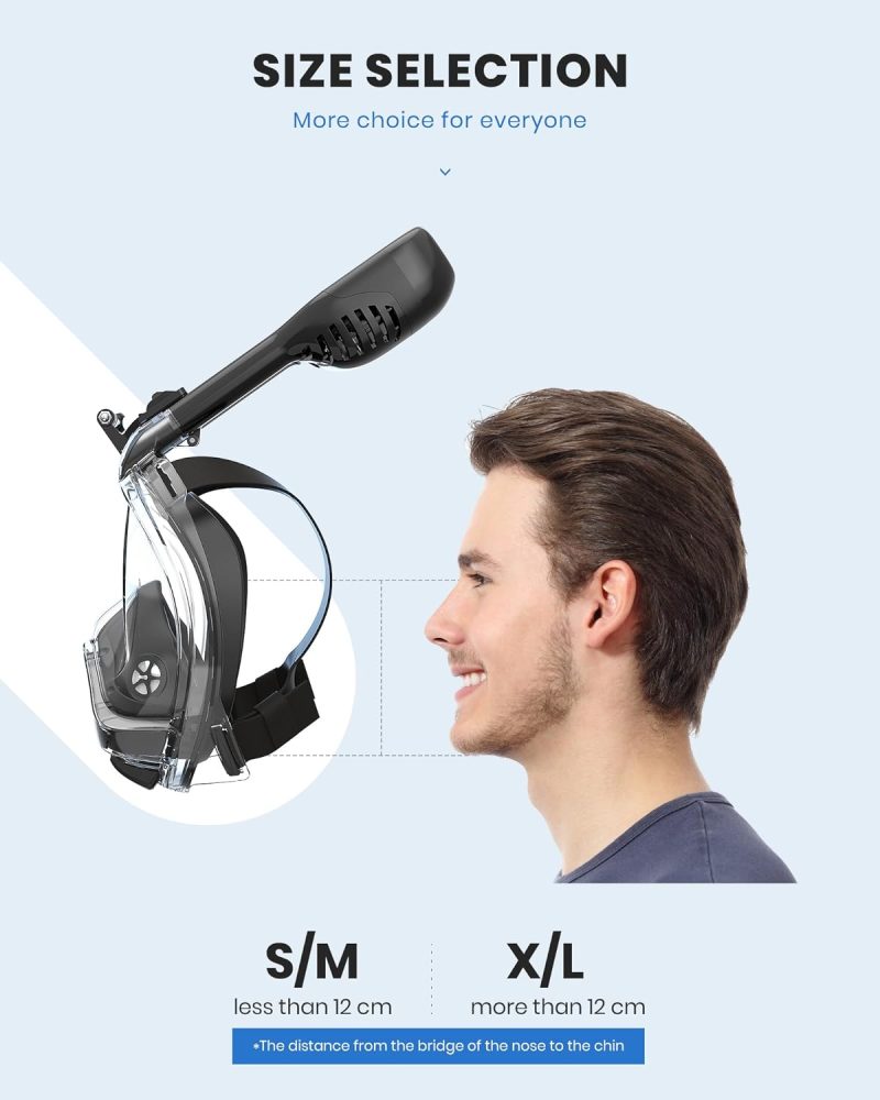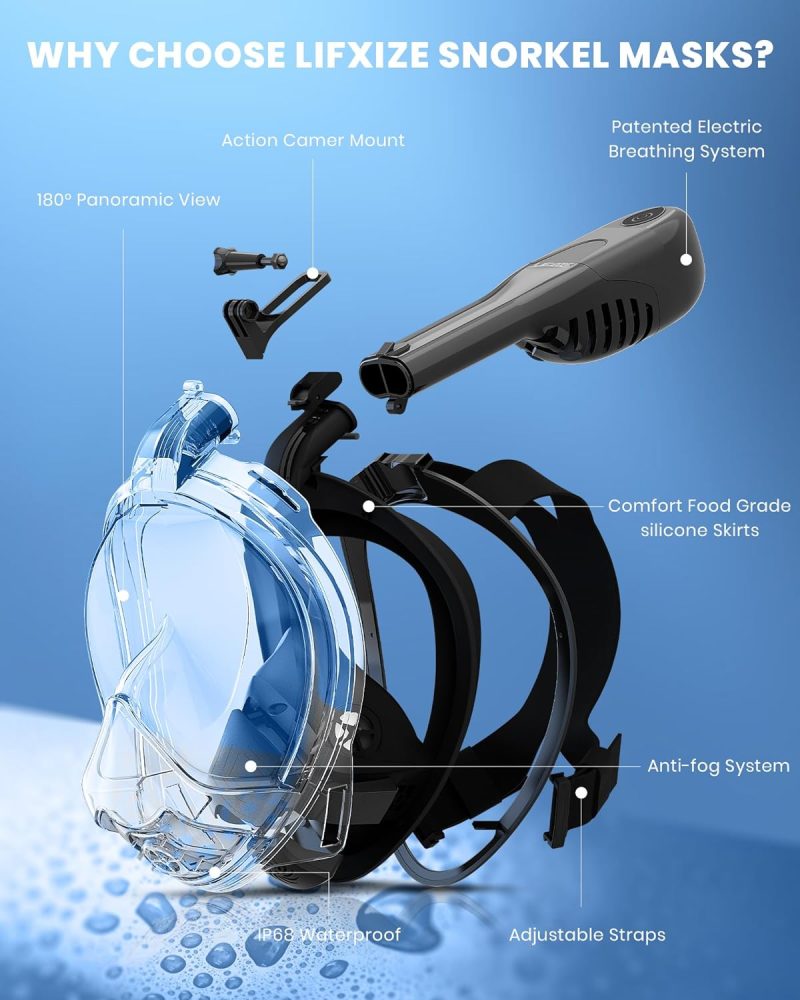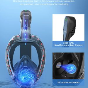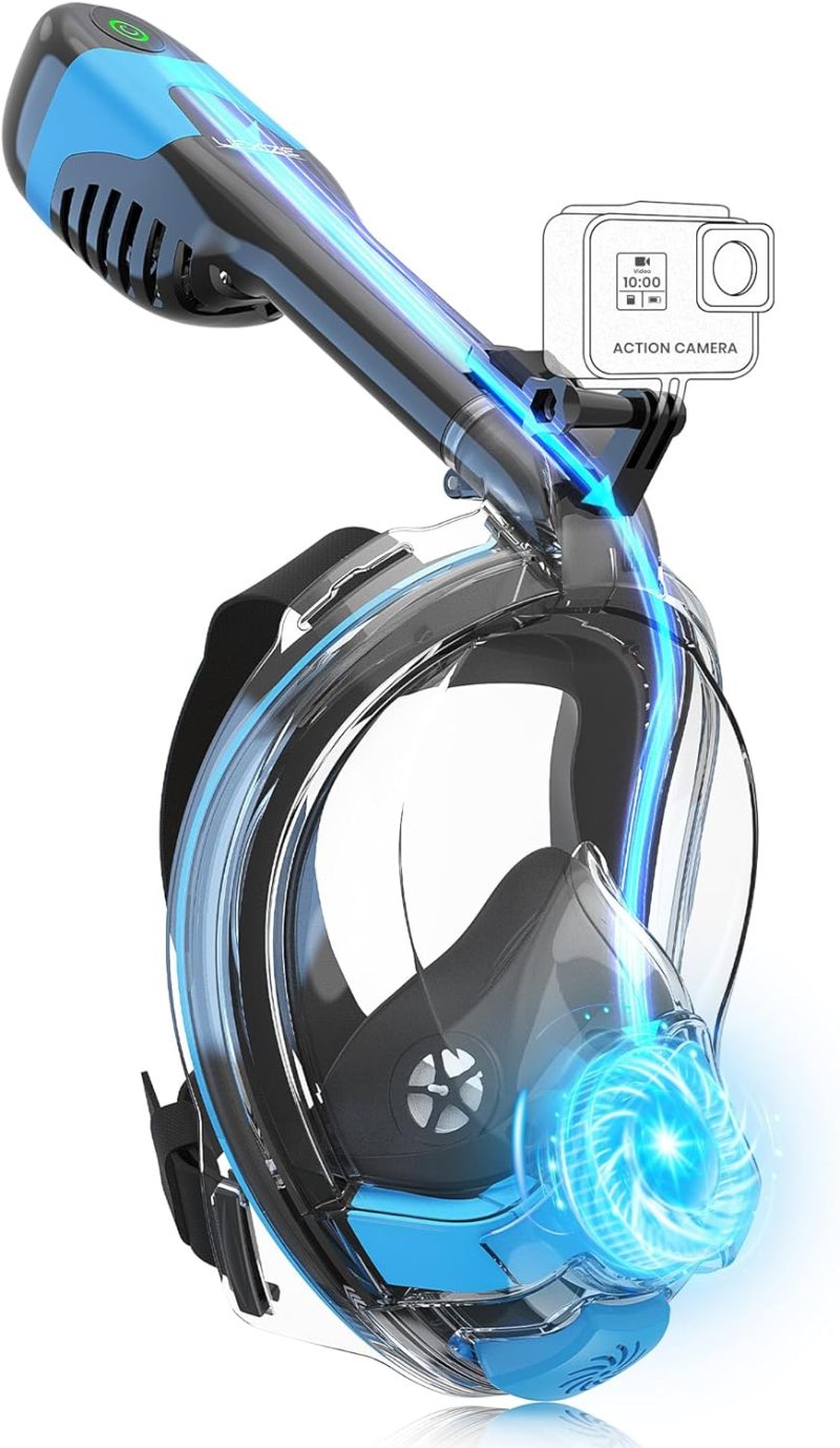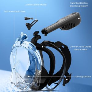 Elecctric Free Breathing Full Face Snorkel Mask for Adult – 180°Panoramic View/Anti-Fog/Anti-Leak Scuba mask with Camera Mount,Snorkeling Gear for Adults