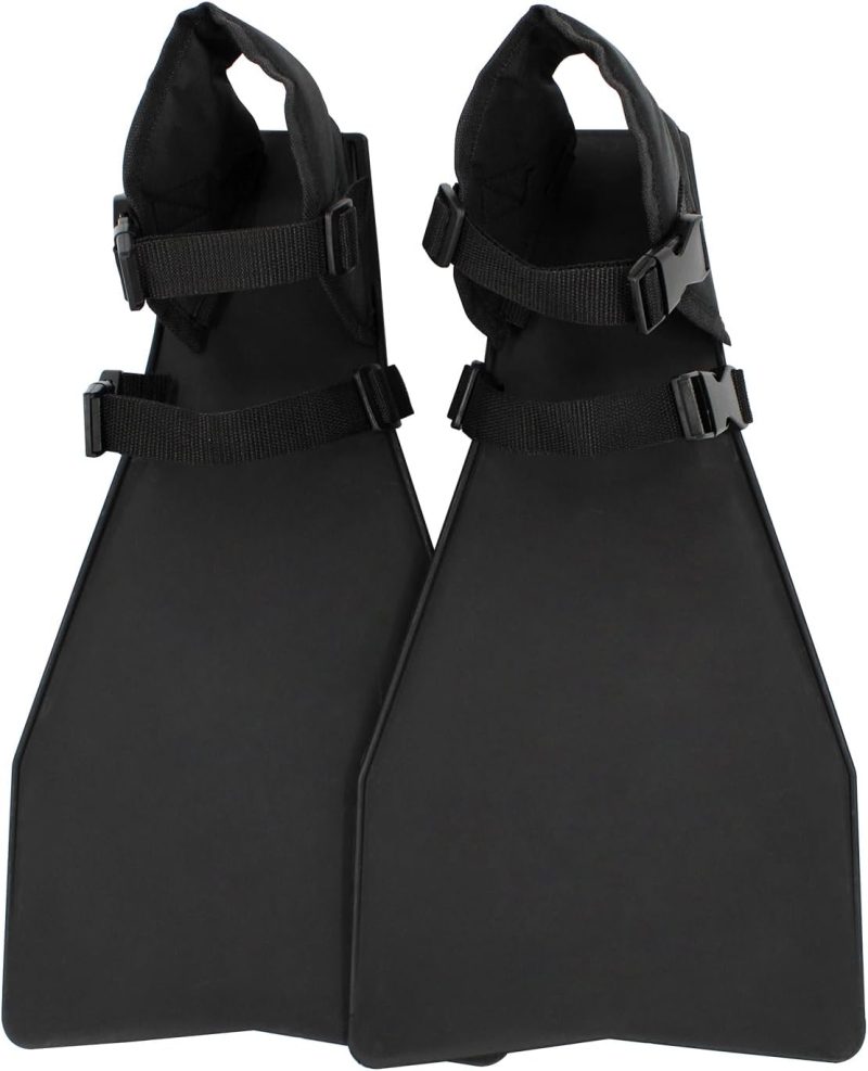 This black fins measure 22″L x 9. 5″W. Adjustable straps and buckles, can fit most people and fit over all types of wader footwear.