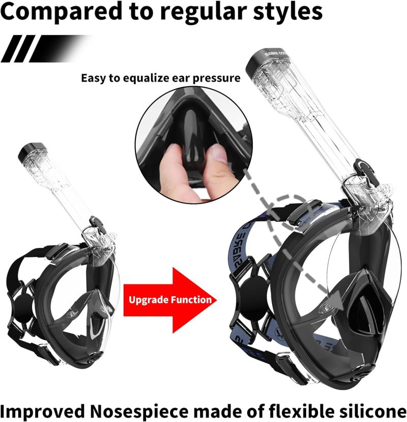 Full Face Snorkel Mask Adults with Ear Pressure Equalizer, Fully Enclosed CO2 Outflow, Silicone Bonding Anti-Leak&Fog,Buckle Folding for Portability
