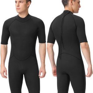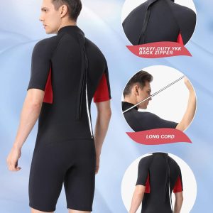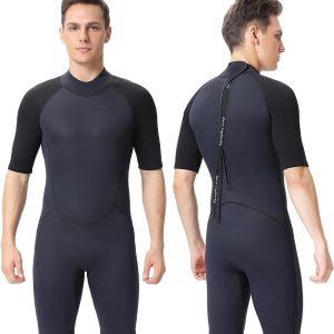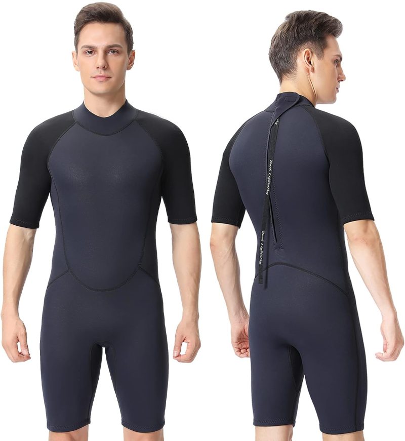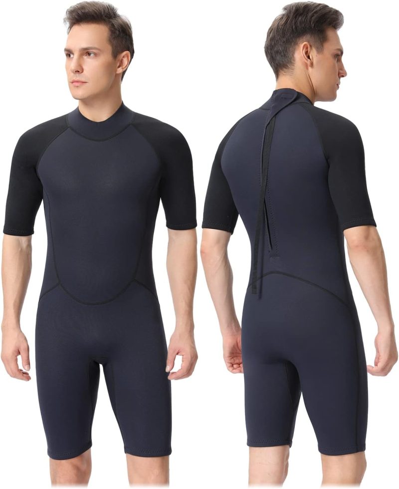 Shorty Wetsuit Men and Women,2mm Neoprene Short Sleeves Wet Suits Back Zip, 1.5mm Shorty Surf Suit Keep Warm in Cold Water for Snorkeling Kayaking Boarding