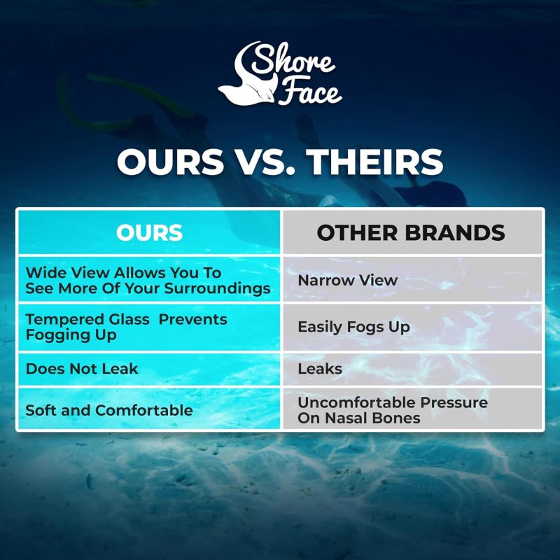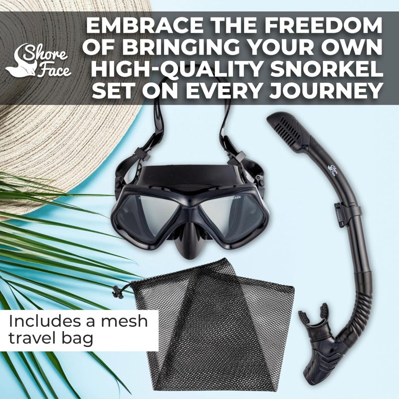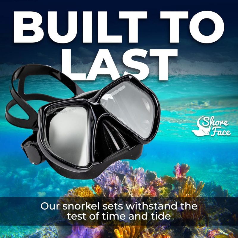 Prepare for your summer vacation and get your scuba diving gear ready with Shoreface! Our snorkeling gear makes every dive worth every second thanks to the crystal clear tempered glass lenses with a wide view that offers a stunning panorama of the underwater world! Designed with your comfort in mind, this scuba diving mask is lightweight but durable, with a strong plastic frame, tempered glass lenses and silicone covers that ensure a secure, leakproof fit for safe diving. Sleek and modern, durable and comfortable, our scuba mask and snorkel set make every snorkeling session both safe and enjoyable.