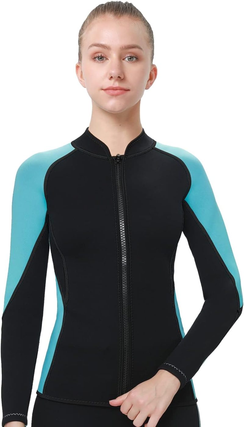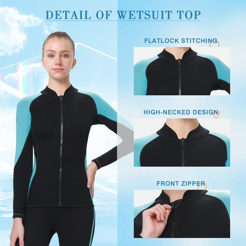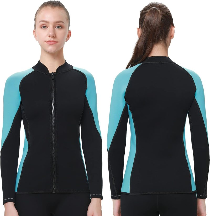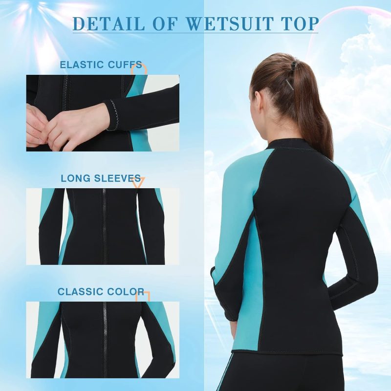 Wetsuit Top Women 2mm Neoprene Jacket, Long Sleeves Front Zipper Ladies Wet Suit 1.5mm for Surfing Diving Swimming Snorkeling Kayaking