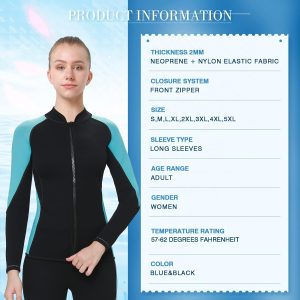 Be the first to review “Wetsuit Top Women 2mm Neoprene Jacket, Long Sleeves Front Zipper Ladies Wet Suit 1.5mm for Surfing Diving Swimming Snorkeling Kayaking”
